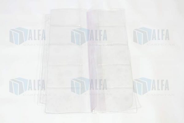 Mica en vinil translucido o cristal con 8 cavidades para 16 tarjetas de presentacion por ambos lados , material anti estatico o cristalino, repuesto para tarjetero tamaño carta.